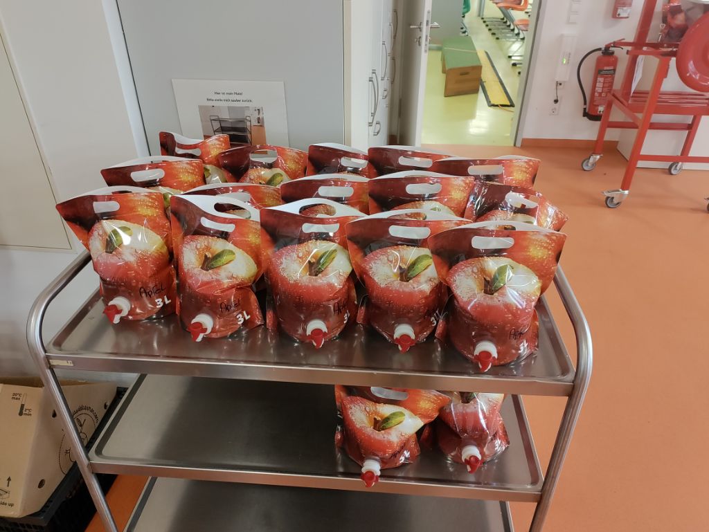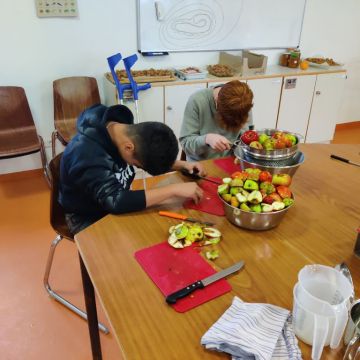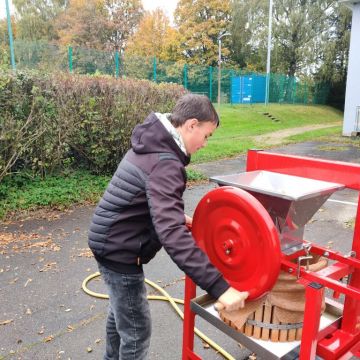 In der letzten Schulwoche vor den Ferien war es wieder soweit: Die **Apfelwoche** stand an! Alle Lerngruppen machten mit und verwandelten Äpfel in leckeren, selbstgemachten Saft.