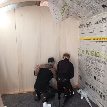 - Die Isolierung mit Holzfaserplatten und das Anbringen der Dampfsperre fand mit Hilfe von LG 4 statt 09.03.2026
