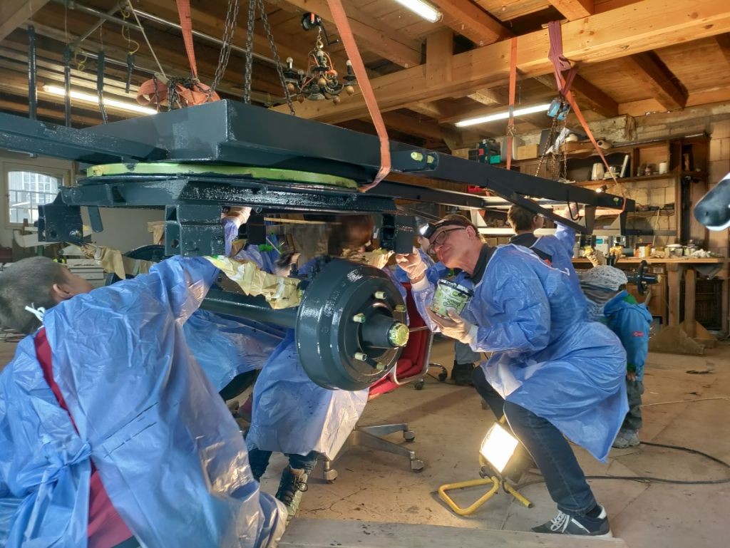 - Das Fahrgestell wurde mit Hilfe der Siebtklässler und Neuntklässler gestrichen 04.+11.12.2025