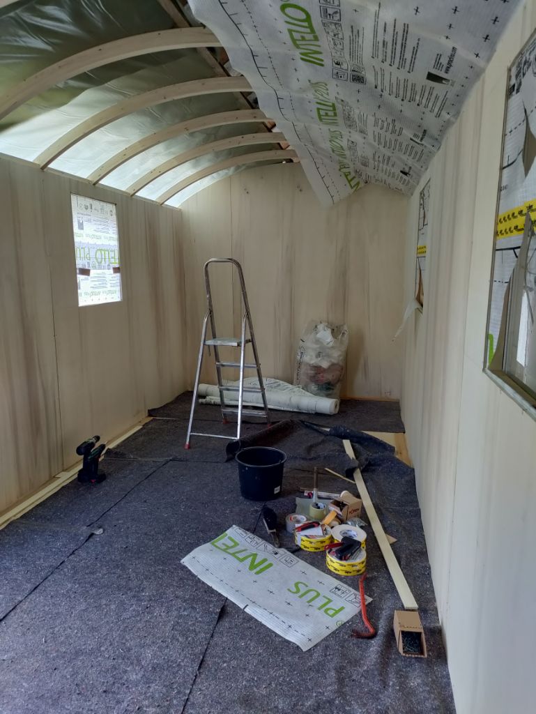 - Die LG6 hat fertig isoliert, die Dampfsperre eingebaut und die komplette Innenverkleidung (außer dem Dach) montiert. -12.03.2026