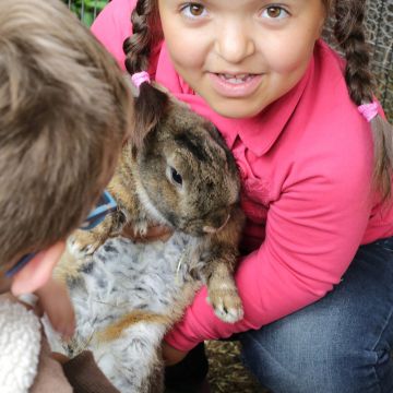 Seit die beiden Hasen da sind, geht für viele Schülerinnen und Schüler morgens der erste Gang zum Hasenstall auf dem Schulhof, um nach dem Rechten zu sehen und die Hasen zu streicheln.